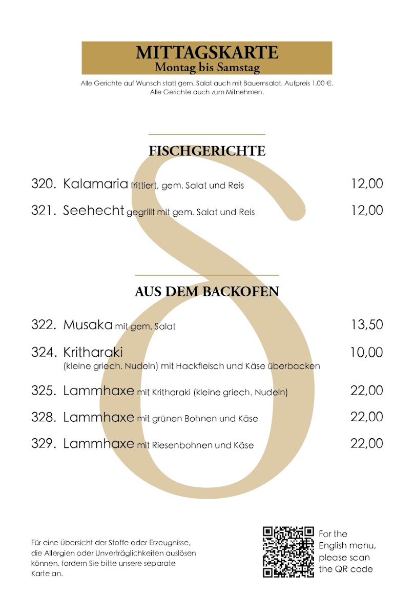 Introducing the Menu at Restaurant Dionysos - Freisinger Str. 3